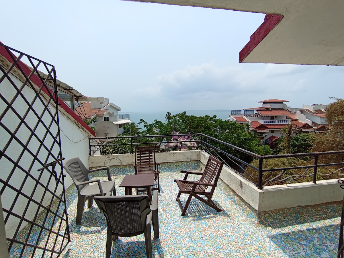 Il nostro spettacolare appartamento con terrazza vista mare, progettato con lusso e comfort, ti coccolerà in una vacanza elettrizzante. In evidenza la nostra vasca idromassaggio con terrazza e un'ulteriore cucina all'aperto, lo spazio si affaccia sulla baia di Nerul e sulla città di Panjim sul fiume Mandovi. Allestimento per 2 ospiti con tutti i servizi moderni di cui avresti bisogno per una vacanza breve o lunga. La vacanza romantica perfetta!...