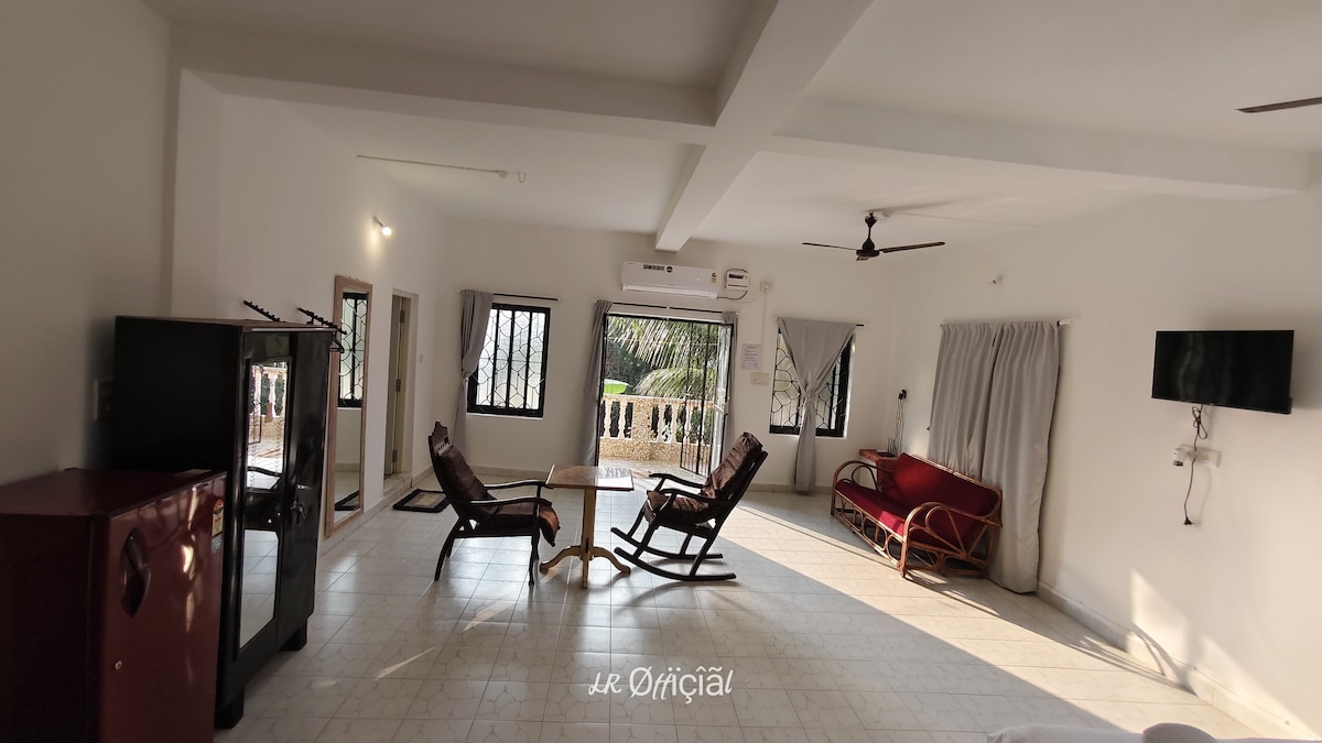 Sea Way Rooms – Rifugio sul lungomare a Baga Svegliati con il suono delle onde! Il Sea Way Rooms si trova proprio sulla spiaggia di Baga, con posti a sedere all'aperto per ogni camera, perfetti per godersi la brezza marina e ammirare il tramonto. Ideale per famiglie, amici o piccoli gruppi in cerca di una rilassante vacanza a Goa. Cosa ti piacerà • Camere spaziose con aria condizionata • Area relax con splendida vista • Letto matrimoniale, frigorifero e TV LCD con cavo • Bagno con acqua calda 24 ore su 24, asciugamani puliti e articoli da toeletta • Alimentazione di riserva affidabile
