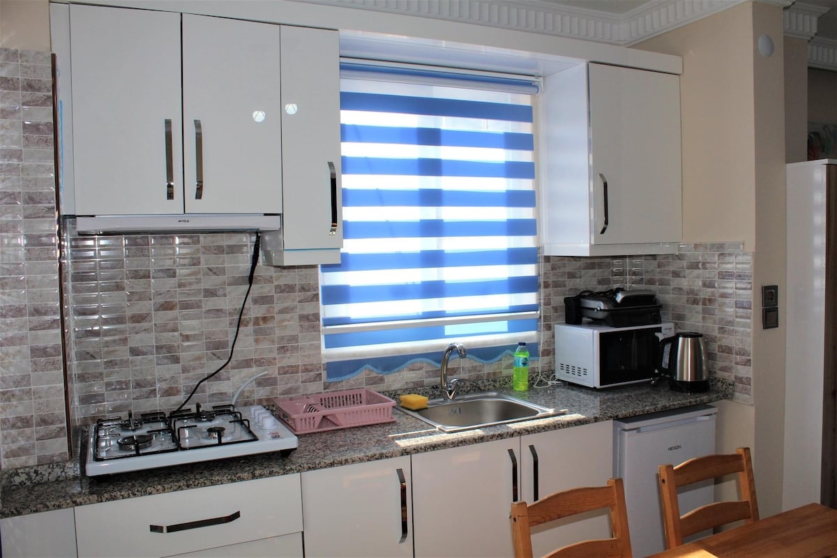 Confortevole e spazioso appartamento con 2 camere da letto, dotato di soggiorno luminoso e cucina completamente riempita, prato e patio privati, questo appartamento fornirà una vacanza tranquilla e rilassante sulla costa Egeo.