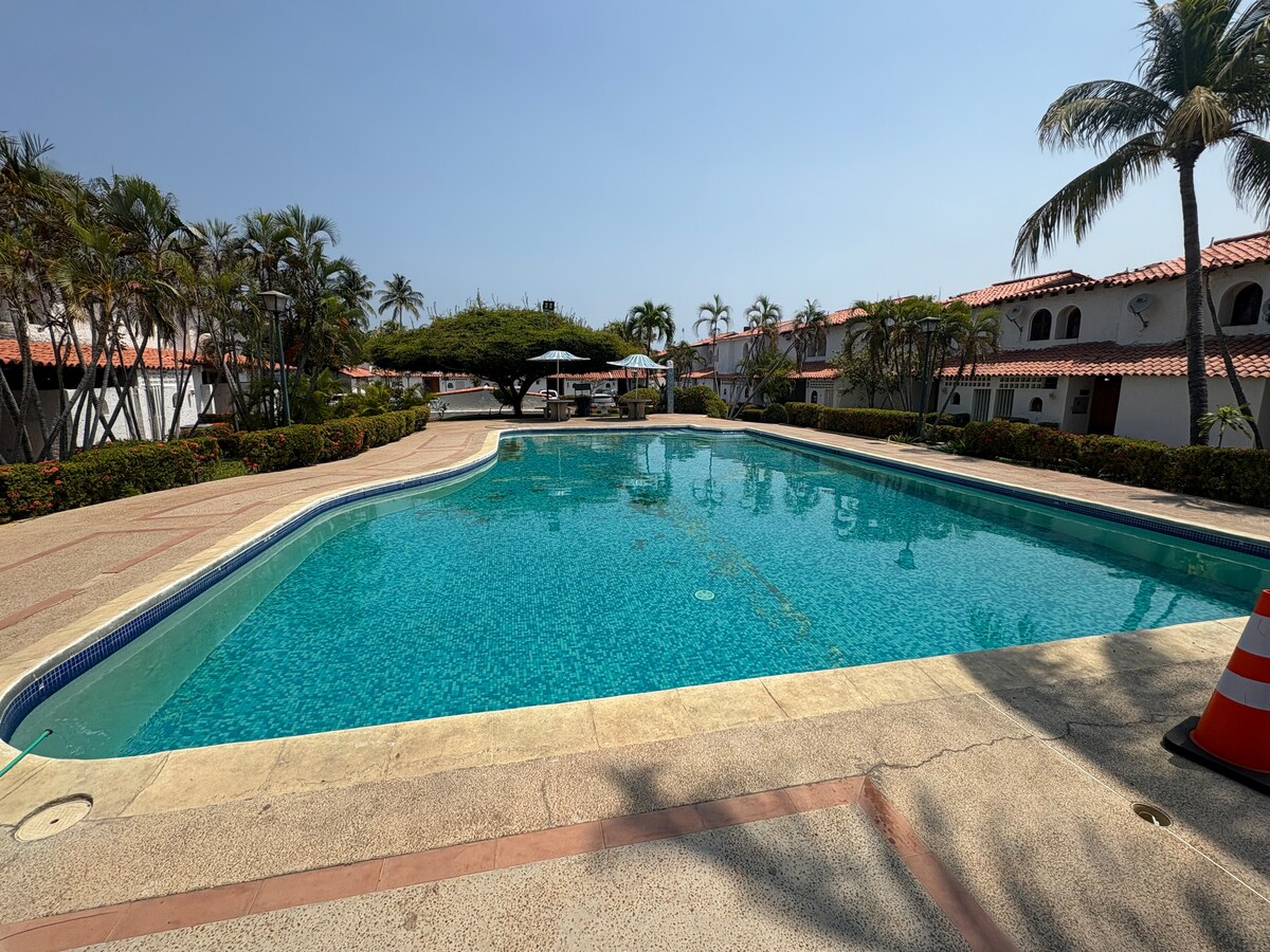 Goditi questo spazio unico, tranquillo e centrale dove puoi vivere giornate meravigliose; ti forniamo un comodo letto con biancheria, cuscini premium, acqua calda, wifi, cucina completamente attrezzata, macchina per il caffè, bagno spazioso, piscina e la migliore posizione a soli 2 minuti dalla spiaggia, farmacia, still lifes, farmacie, supermercati e ristoranti.