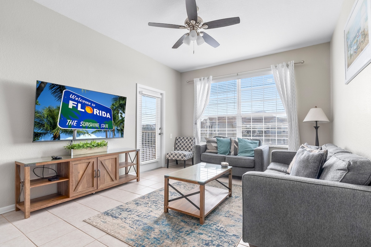 Vivi la perfetta vacanza nella zona Disney nel nostro spazioso appartamento con 2 camere da letto e 2 bagni disponibile per affitti a breve termine, ideale per un massimo di 5 ospiti e con incredibili servizi in stile resort, tra cui un parco acquatico, un rilassante fiume lento, una palestra completamente attrezzata e una posizione privilegiata a pochi minuti dai famosi parchi a tema e dai migliori centri commerciali, che offrono tutto il necessario per comfort, comodità e divertimento in un unico soggiorno indimenticabile!