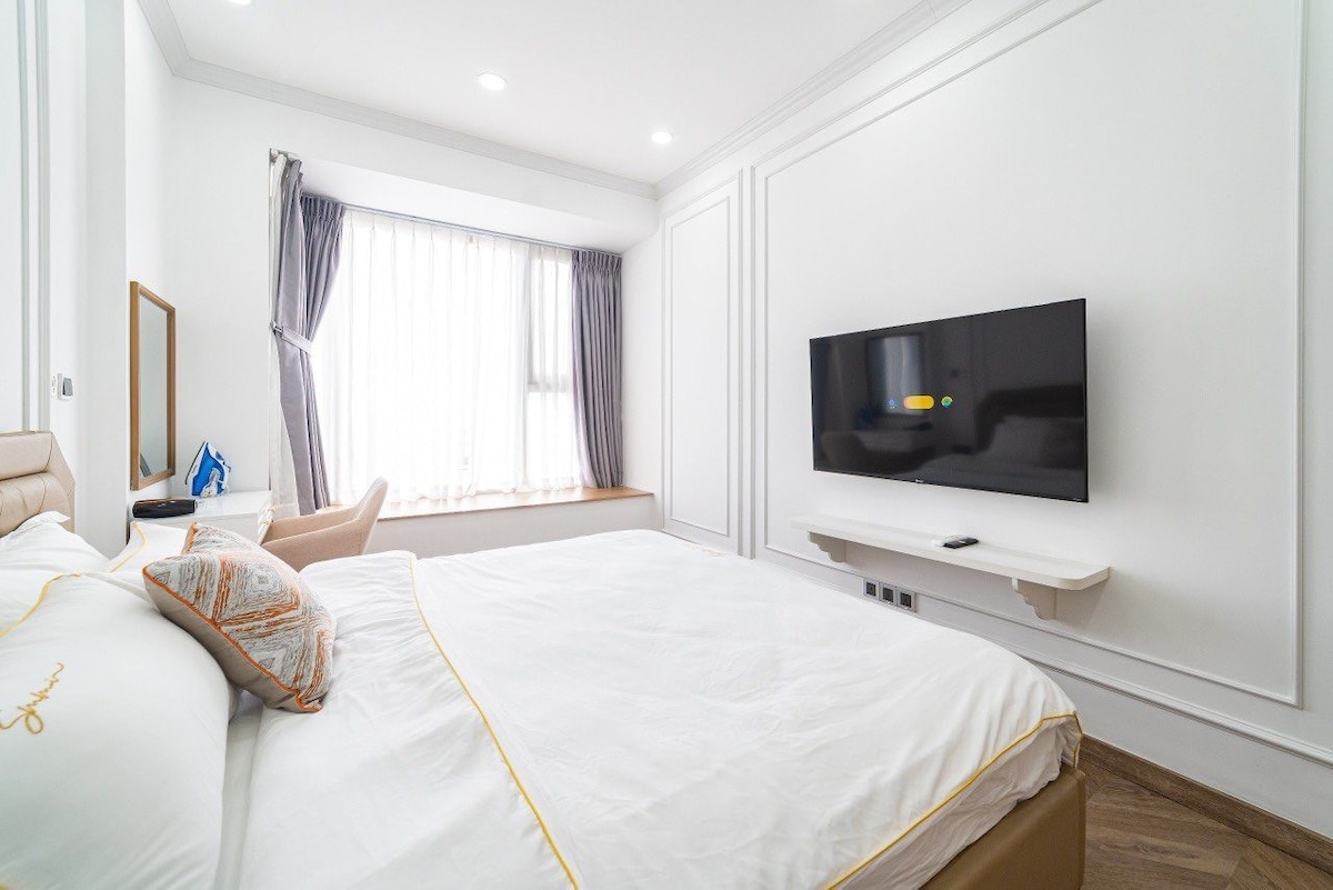 Looking for a cozy, fully furnished home near District 1? Our Ivory Bliss-style 2-bedroom apartment in District 4 is just 5–7 minutes from District 1! Enjoy a smart TV with Netflix, a private washer and dryer, a fully equipped kitchen, and comfy King and Queen beds. Relax at two free swimming pools (one rooftop with a city view!) or work out at the gym. Need to work remotely? We’ve got a quiet co-working space ready for you. Family Mart and 3 Sạch Market are right outside for your daily needs.