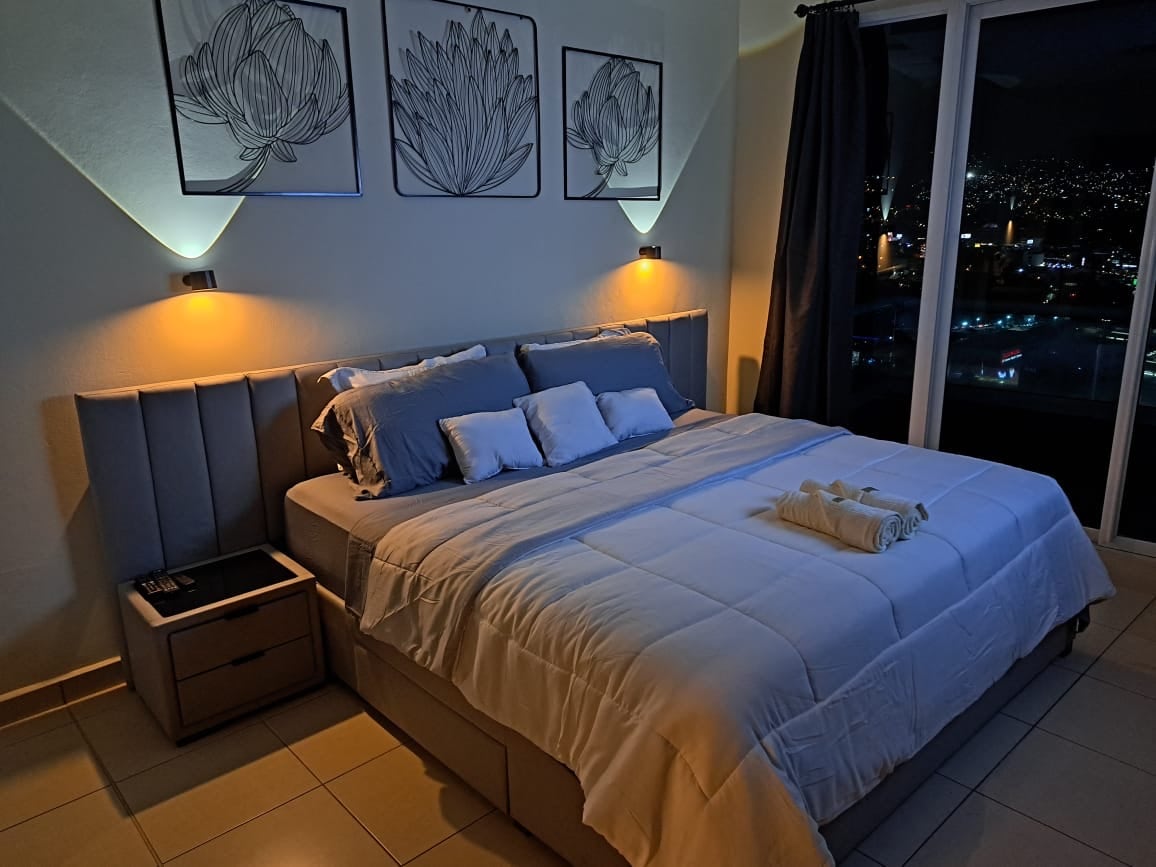 Situato a Tegucigalpa in una delle zone più esclusive e centrali. Dispone di tutti i comfort e di una splendida vista su tutta la capitale. - Aria condizionata in soggiorno e camera da letto. - Smart TV da 55" con sistema home theater e Netflix (soggiorno). -Smart Tv 42” e Netflix (camera da letto). - Camino interno. - Completamente arredato. - Balcone con vista sulla città. - Palestra. - Area sociale. - Parcheggio gratuito. **Non sono consentite visite.**