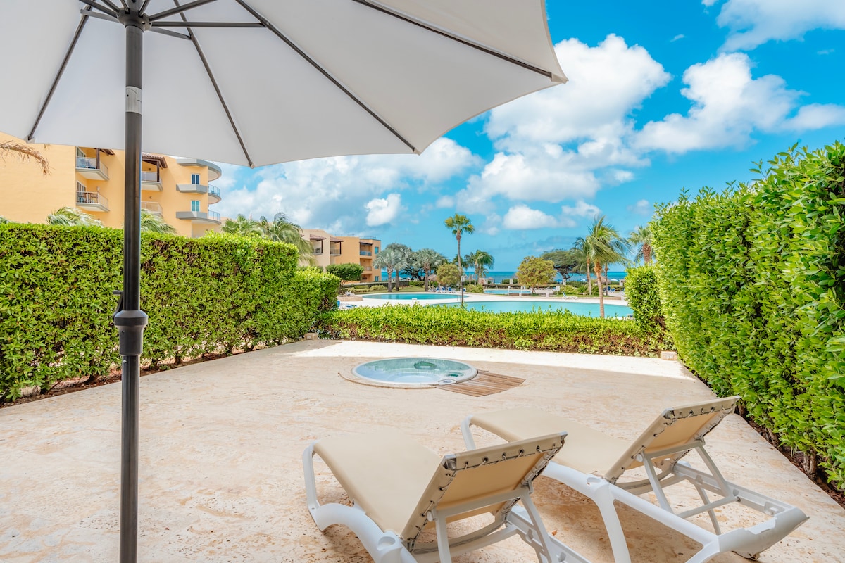 Appartamento accogliente situato al piano terra, con accesso diretto alla zona piscina e vicino al cancello della spiaggia. Vasca idromassaggio privata e griglia per barbecue, ampia piscina e patio con vista sulla spiaggia, 2 bagni, Wi-Fi gratuito, aria condizionata, cassetta di sicurezza, piscina, palestra, sicurezza 24 ore su 24, 7 giorni su 7, parcheggio privato. Situato a pochi passi dalla migliore spiaggia dell'isola, che è anche tra le prime cinque al mondo: Eagle Beach, vicino a ristoranti e supermercati. Sedie a sdraio, asciugamani e frigorifero forniti.