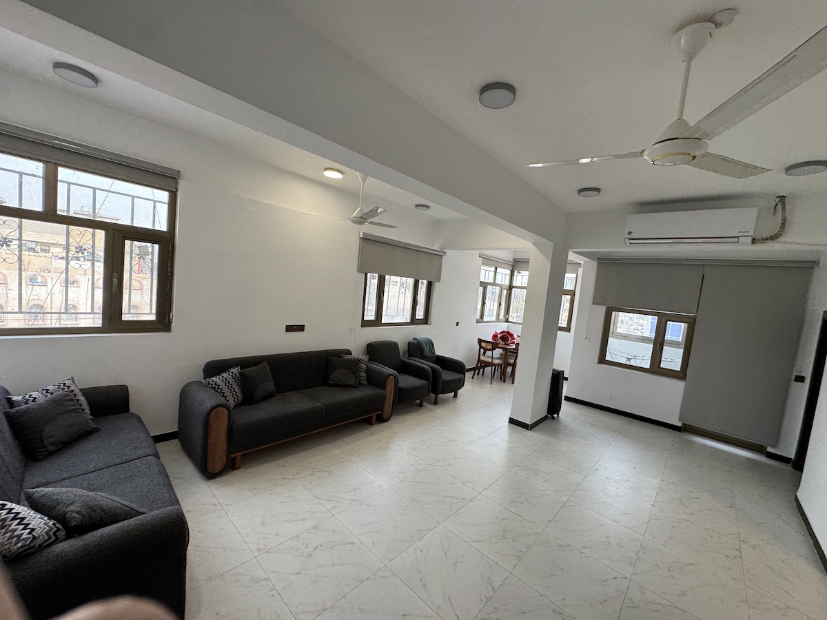 Un moderno appartamento dotato di arredi moderni per quattro persone situato nella tranquilla zona di Yarmouk al piano terra con due camere da letto con salone, bagno, cucina completamente attrezzata e arredi .
