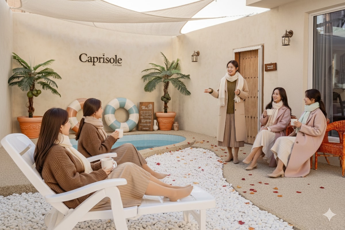 ์นดํ๋ฆฌ์๋ (CapriSole)๋ ์์ด๋ ๊ทธ๋ฃน (LUN8)๊ฐ ์์คํธ๋ก(ASTRO)์ ๋ ธ๋ โ์จ๊ฐ๋น (Breathless)โ ์ปค๋ฒ ์์์ 2025๋  8์ 21์ผ ์ดฌ์ํ ์ฅ์๋ก๋ ์๋ ค์ง ํ๋ผ์ด๋น ํ๋น๋ผ์ ๋๋ค. ์์ธยท์๋๊ถ์์ ์ฝ 40๋ถ, ์๋ฒ๋๋๊น์ง ์ฐจ๋ก 5๋ถ ๊ฑฐ๋ฆฌ์ ์์นํด ์์ผ๋ฉฐ, 3m ๋์ด์ ๋ด์ฅ ์์ ํฌ๋ฆผํค ๋ฏธ์ฅ ์ธ๋ฒฝ๊ณผ ์ผ์์, ์ ์ธ์ฅ, ๋ฐ๋ฆฌ ํญ์๋ฆฌ๊ฐ ์ด์ฐ๋ฌ์ ธ ๋จ์ ๋ฝ๊ณผ ๋ฐ๋ฆฌ ๊ฐ์ฑ์ ๋์์ ๋๋ ์ ์๋ ์ด๊ตญ์ ์ธ ๊ณต๊ฐ์ ์ ๊ณตํฉ๋๋ค. 1์ผ 1ํ๋ง ์์ฝ ๊ฐ๋ฅํ ๋ ๋ฆฝ ํ๋น๋ผ๋ก, ๊ฐ์กฑ ์ฌํยท์ฐ์ธ ๊ธฐ๋ ์ผยท์น๊ตฌ ๋ชจ์์ ๋ฌผ๋ก , ํ๋ณดยท๋ฎค์ง๋น๋์คยท๋ธ์ด๋ก๊ทธ ์ดฌ์์ง๋ก๋ ๊ฐ๊ด๋ฐ๊ณ ์์ต๋๋ค. ์์ด๋์ด ์ ํํ ๊ณต๊ฐ์์ ํ๋ผ์ด๋ฒ์์ ํน๋ณํ ๋ถ์๊ธฐ๋ฅผ ๋๋ ค๋ณด์ธ์.