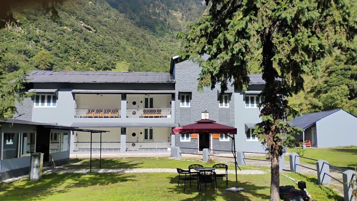 Pahadi Home, on the bank of Bhagirathi River, magnificent Valley n Forest View n Greater Himalayan View, Natural Farming, Apple Orchard. Perfect for those who wants to spend time in nature's abundance. Gangotri is just 22 km, Gartang Gali 11 km, Nelong Valley Entry point 11 km. Saat Taal and Jhanda Bugyal Trek from property itself. Approx 300 meters trek from parking to property, which takes just 1-2 minutes but please be informed. Pl do not book if do not want to walk even for approx 300 mts.