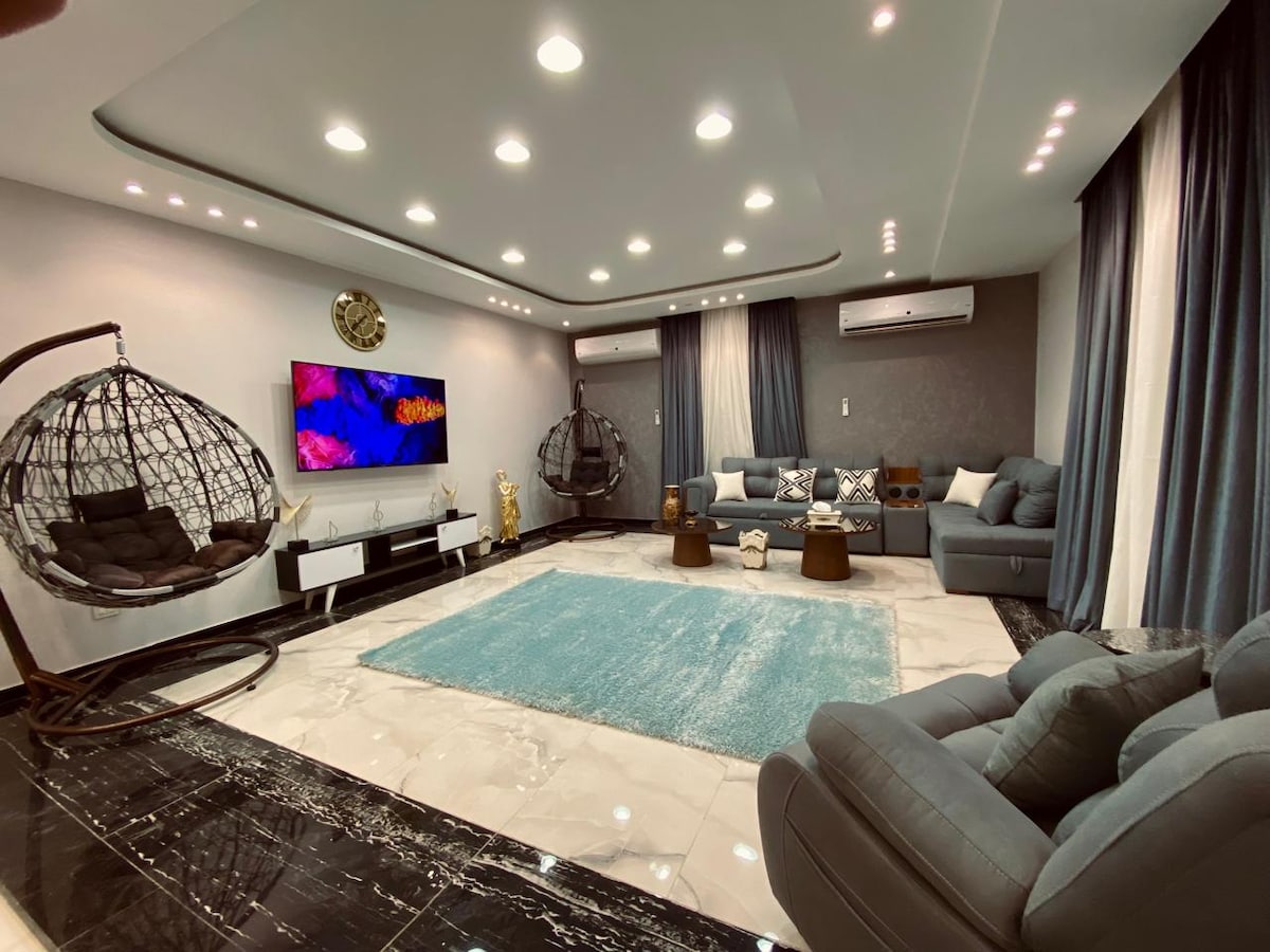 Welcome to our beautifully designed 3 bedroom modern flat in the heart of Mohandessin, offering breathtaking views and unmatched elegance. Perfect for families, groups, or business travelers, this stunning apartment features sleek, contemporary interiors, cozy bedrooms, a chic living area, and a fully equipped kitchen. Located in a prime spot, you’re just steps from top restaurants, cafes, and shops. Experience the perfect blend of style, comfort, in this exceptional Homely retreat.
