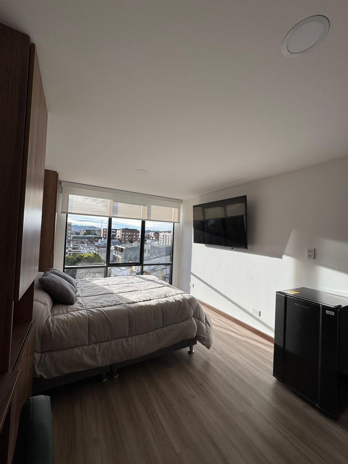 Disfruta de este loft moderno, ideal para estancias largas, familias y nómadas digitales. Su diseño en madera natural e iluminación crean un ambiente cómodo para vivir, trabajar y descansar. Cuenta con wifi de alta velocidad, cocina full equipada, cama y sofá-cama con capacidad hasta para 4 personas, perfecto para teletrabajo y una vida diaria práctica. Podrás disfrutar de la vista a los cerros orientales con cercanía de cafés, supermercados y restaurantes. Parqueadero con costo adicional.