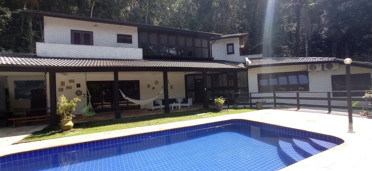 Importante: NON autorizziamo eventi presso la proprietà né l'uso diurno per persone che non soggiornano presso la struttura. Incredibile casa sulla spiaggia di Domingas Dias a Ubatuba, San Paolo. Situata in un condominio chiuso, la casa si trova in una proprietà di 3.200 m², con sicurezza 24 ore su 24, piscina, zona barbecue, sauna e un meraviglioso giardino. La casa dispone di 5 spaziose suite dotate di aria condizionata e cabina armadio. Numero massimo di ospiti: 10 adulti e 6 bambini