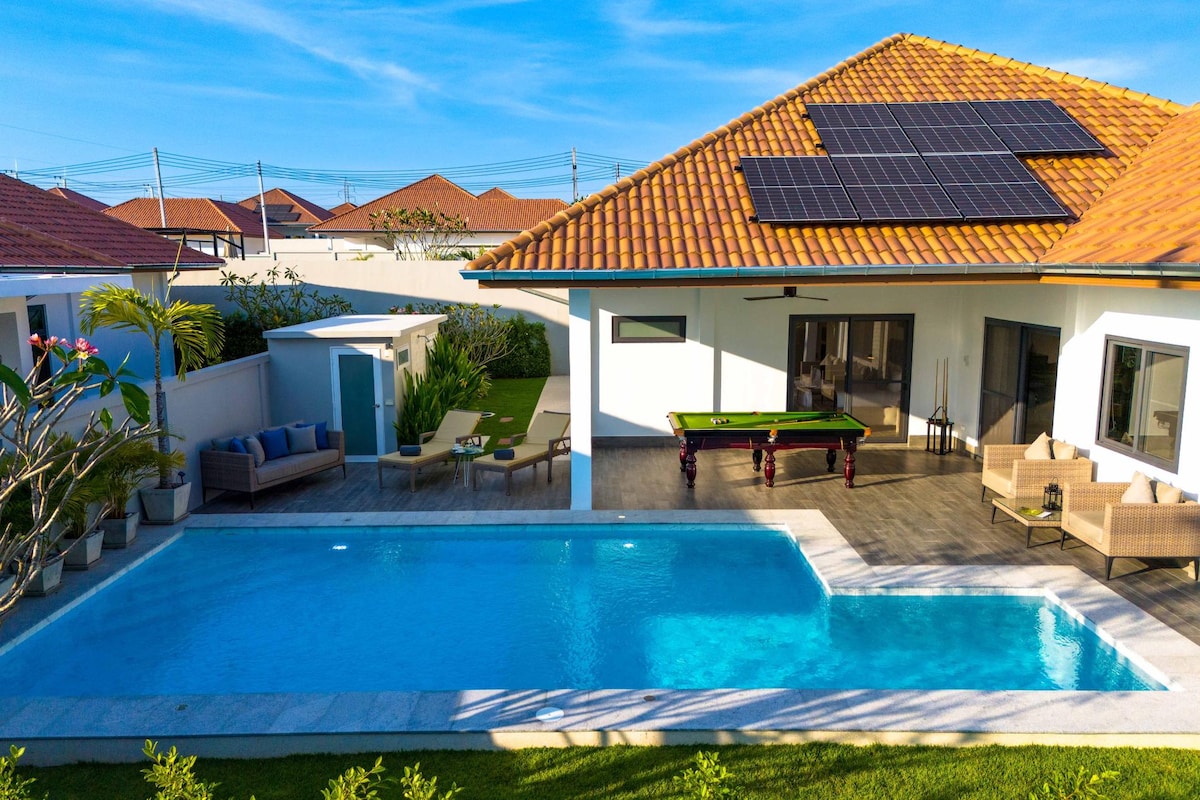 Villa 🏡 di lusso con piscina privata a Hua Hin | 3BR, 3BA | 10 posti letto Escape to Lazy & Relax @ Hua Hin, una moderna e spaziosa villa con piscina privata con 3 camere da letto, perfetta per famiglie, amici e vacanze di gruppo. Con una piscina privata con scivolo, tavolo da biliardo e interni eleganti, questa villa offre il perfetto mix di relax e intrattenimento in una posizione tranquilla vicino alle migliori attrazioni di Hua Hin.