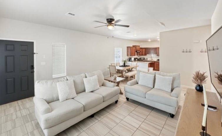 Escape to the Sonoma Luxury Villa, surrounded by the Organ Mountains with sunset views a beautiful farmhouse-style retreat in the heart of Sonoma Ranch. This elegant 2-bedroom, 2-bathroom home is just walking distance from the golf course and features two private patios, and a cozy coffee station with your daily necessities. Experience comfort, charm, and modern desert luxury — your perfect Las Cruces getaway awaits.