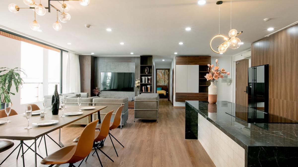 Benvenuti nel nostro accogliente alloggio Airbnb nel cuore di Vinhomes Grand Park, situato nella torre D del Masteri Centre Point. Questo appartamento al piano terra si affaccia sul campo da tennis e si trova a soli 5 minuti a piedi dal centro commerciale Vincom Mega. Progettato con un tocco di stile vietnamita vintage, lo spazio offre un'atmosfera calda e accogliente. Gli ospiti possono usufruire di servizi premium come una piscina di acqua salata, una vasca idromassaggio, una palestra, parchi giochi interni ed esterni e un'area barbecue, ideale per rilassarsi o trascorrere del tempo di qualità con la famiglia.