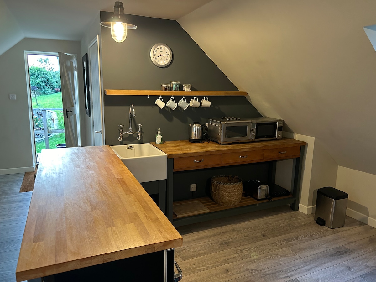 Un bellissimo monolocale nuovo nella campagna del Dorset con vista mozzafiato, ingresso privato e terrazza privata su cui rilassarsi. Il monolocale è dotato di bagno interno e di un nuovo angolo cottura ad uso esclusivo degli ospiti. Situato di fronte al pluripremiato pub "Thimble Inn", in un accogliente villaggio nella pittoresca Piddle Valley. Si tratta di una posizione centrale perfetta per esplorare il Dorset, con molte attrazioni nelle vicinanze, a soli 10 minuti di auto dal gigante di Cerne Abbas o da Dorchester e a 25 minuti dalla Jurassic Coast.
