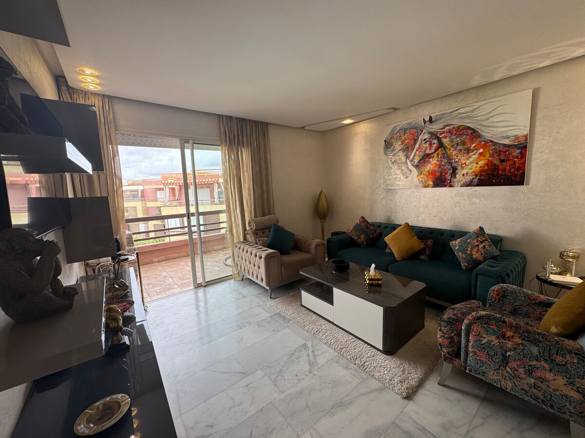 Laissez-vous séduire par ce magnifique appartement situé dans une résidence neuve, élégante et sécurisée, idéalement implantée au cœur de Marrakech. À seulement 1 min de la gare, profitez d’un emplacement rare où tout se fait à pied : restaurants raffinés, boutiques et services au pied de la résidence. Bureau de change à 20 m. Entre art de vivre et découvertes culturelles, le Jardin Majorelle, le Musée Yves Saint Laurent, l’Hivernage et la place Jemaa el-Fna sont accessibles en 10 min