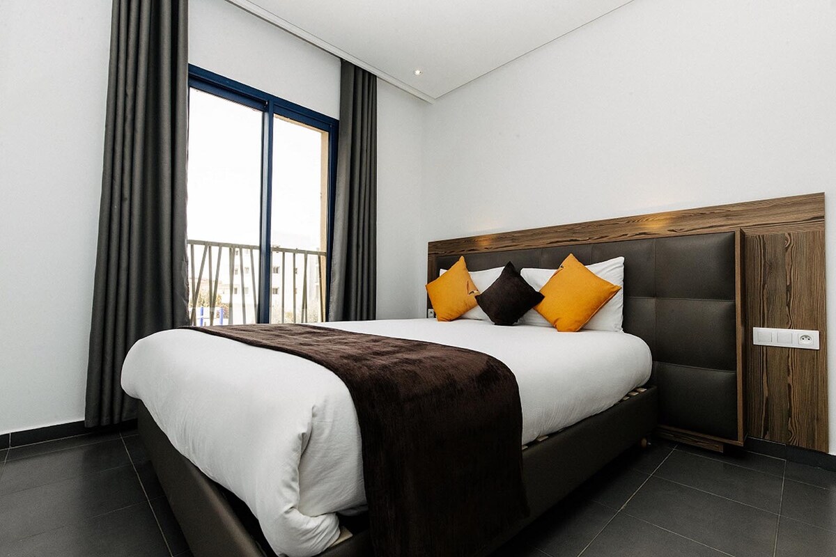 Appartamento in una posizione tranquilla e sicura con sicurezza 24 ore su 24. In una residenza elegante e centrale. Le coppie marocchine devono presentare un certificato di matrimonio valido per poter soggiornare nell'alloggio. Inoltre, è severamente vietato ricevere visitatori o persone non dichiarate al momento della prenotazione iniziale; solo le persone menzionate e confermate nella prenotazione sono autorizzate ad accedere all'appartamento.