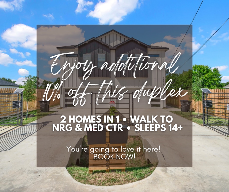 2 alloggi in 1 • A pochi passi da NRG e Med Ctr • Oltre 14 posti letto