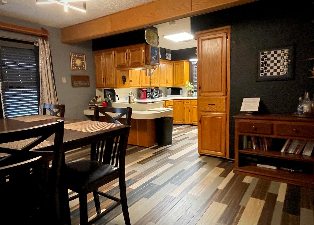 Ti diamo il benvenuto a The Oasis Hideaway, situato a soli 15 minuti dal Power & Light District e dagli iconici stadi Kauffman e Arrowhead. Immergiti nel relax con la nostra pittoresca vasca idromassaggio con vista sul giardino, famosa per essere apparsa in un film giallo ambientato in una vasca idromassaggio. Sfida gli amici al tavolo da biliardo e crea ricordi indimenticabili. Celebriamo oltre quattro anni di esperienze eccezionali per gli ospiti e ti invitiamo a goderti un soggiorno unico nella nostra serena fuga!