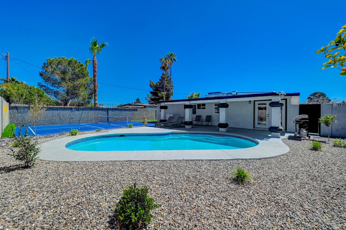Ti diamo il benvenuto nel nostro elegante rifugio Airbnb situato a Las Vegas, a pochi minuti dalla famosa Strip e dal centro città. Questa struttura per famiglie offre un mix unico di relax e divertimento, con un campo da pickleball e una scintillante piscina. Il nostro alloggio Airbnb è perfetto per le famiglie in cerca di una vacanza divertente, con tanto spazio per giocare e rilassarsi. Con il suo arredamento moderno e i servizi confortevoli, questo alloggio Airbnb offre la base perfetta per la tua avventura a Las Vegas.