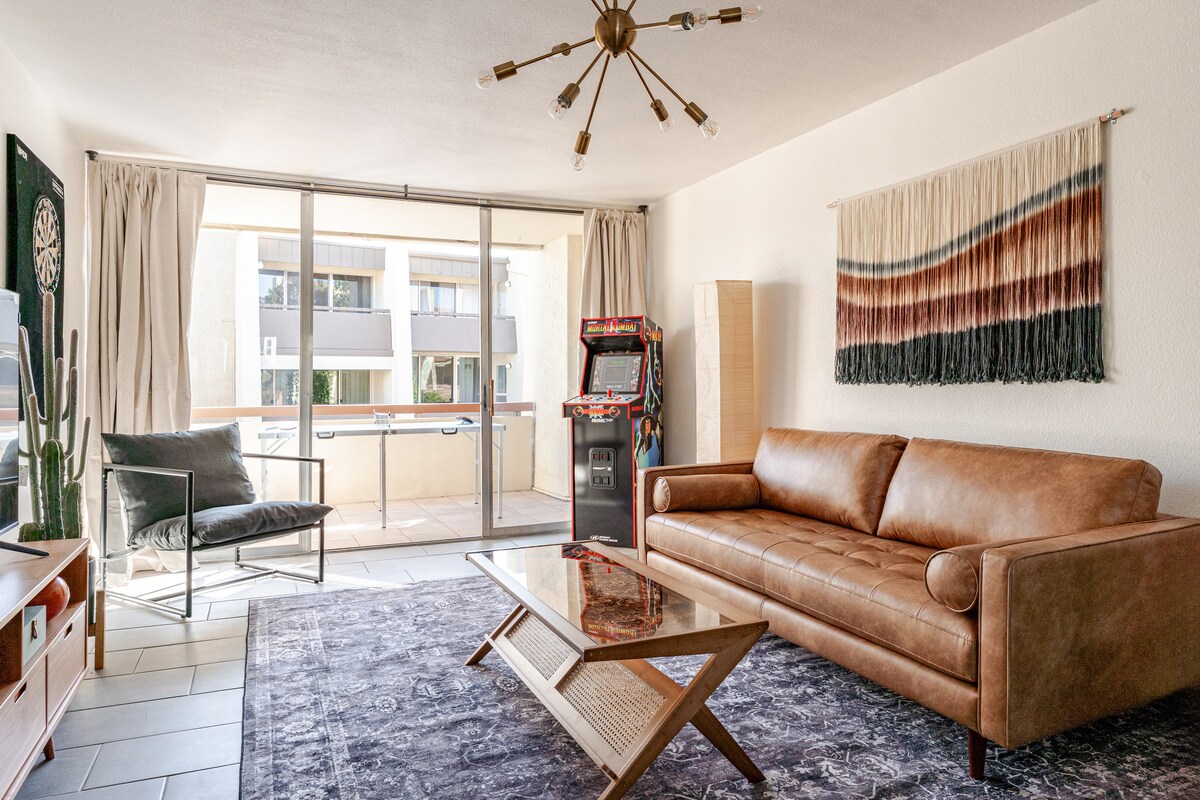 Lo spazio: Benvenuti a Palm Paradise, il vostro rifugio rilassante nel cuore della città vecchia di Scottsdale. Ristrutturato nell'ottobre 2024, questo appartamento unisce un elegante design desert-boho con tutti i comfort di una casa, creando uno spazio bello e funzionale. Rilassati sull'accogliente divano componibile in velluto a coste verdi, perfetto per un pisolino, o esci sul balcone privato per ammirare spettacolari viste sul tramonto sulla Camelback Mountain. Entra nella tranquilla camera da letto con letto king-size e lenzuola di alta qualità.