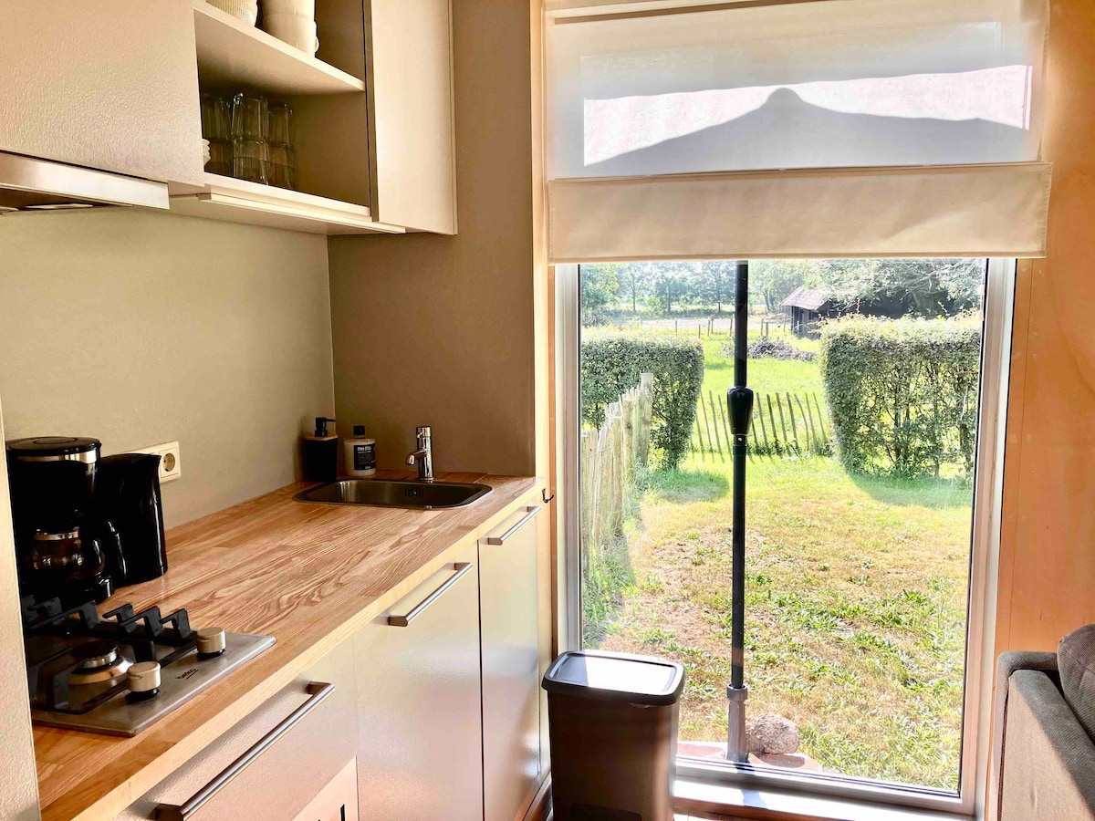 Ti diamo il benvenuto nella nostra minicasa unica, nascosta in una foresta privata ai margini dell'incantevole villaggio frisone di Noordwolde. Questo moderno alloggio è ideale per chi cerca la pace e per gli amanti della natura. In estate, goditi il tuo ampio giardino privato con area salotto, veranda e amaca tra gli alberi. In inverno, puoi sederti comodamente all'interno vicino alla stufa a legna che riscalda lo spazio in pochissimo tempo. La minicasa è compatta ma dotata di tutti i confort!