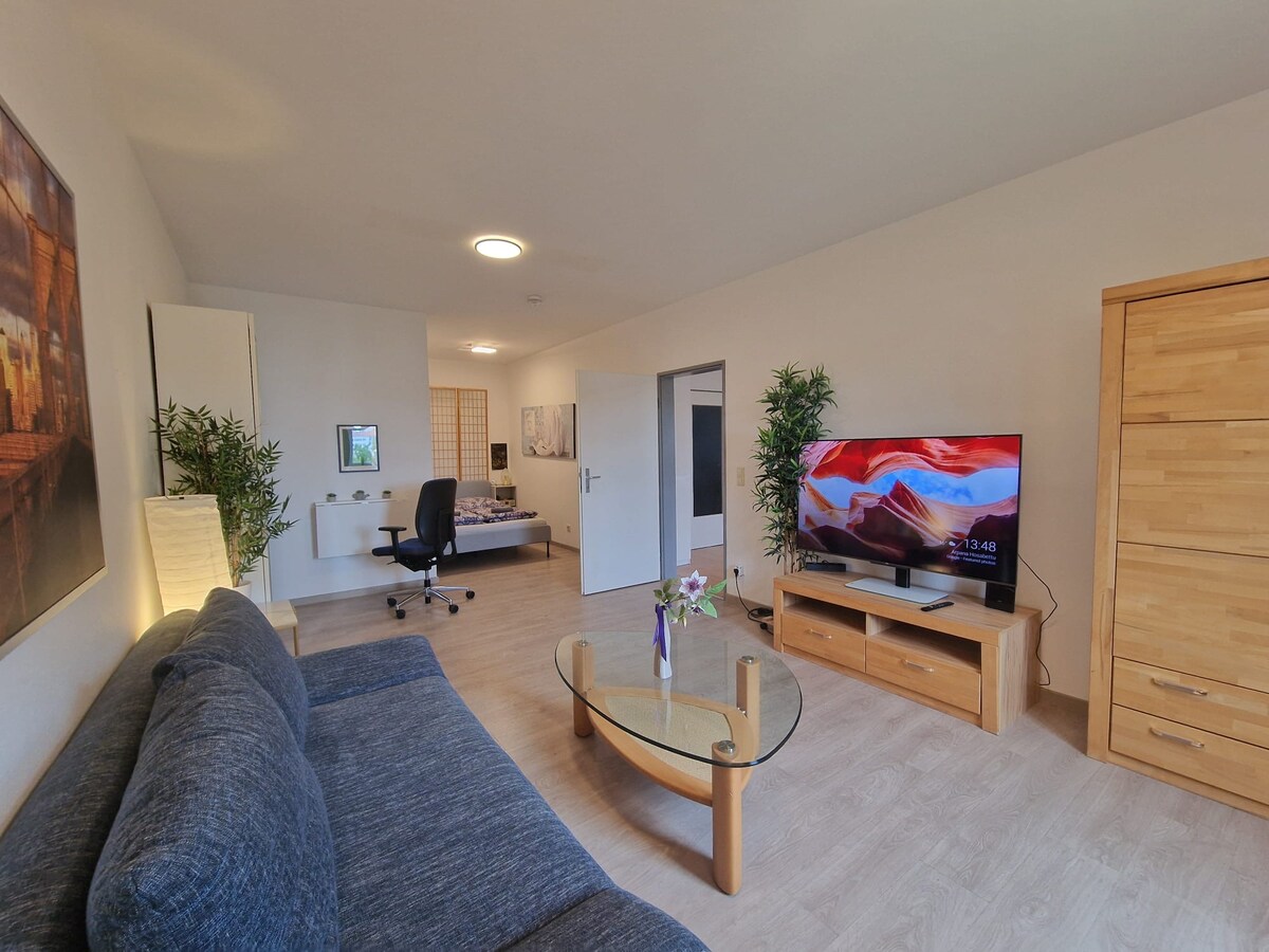 Ciao e benvenuto nella tua nuova casa vacanze nel cuore di Dresda. Ti aspetta un appartamento moderno molto elegante e di alta qualità, composto da 3,5 locali, con 2 camere da letto e un letto matrimoniale aggiuntivo nel soggiorno, con vista sul giardino storico. Goditi il sole della sera sulla terrazza con una cena o con un bicchiere di vino e un caminetto nella vasca idromassaggio. Troverai tutto ciò che ti serve per un soggiorno indimenticabile a Dresda.