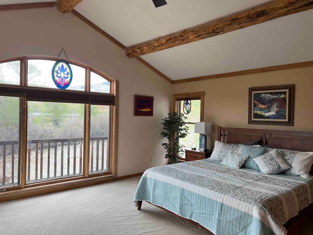 This newly remodeled second story cabin on Pine Creek is a sanctuary. The cabin has a nature inspired interior with a slate tile entry, wood floors and tongue and groove ceilings that give it a mountain modern feel. Enjoy watching abundant wildlife from every window and listening to the gentle stream while sitting in the private garden. This cabin is located close to downtown Pinedale and next door to hosts, yet it feels secluded. 78 scenic miles to downtown Jackson, WY.