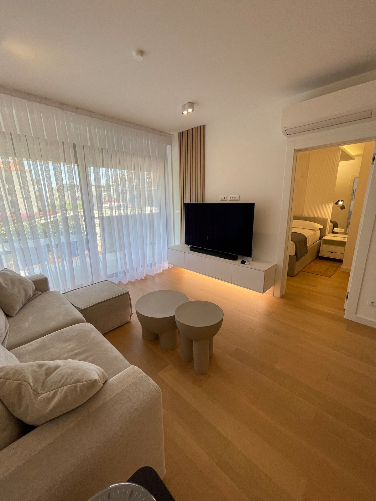 Goditi il tuo soggiorno in un moderno appartamento climatizzato con piscina esterna condivisa. All'interno troverai un luminoso soggiorno, un'accogliente camera da letto e un bagno con cabina doccia. Rilassati a bordo piscina o utilizza la palestra in loco. La sera, goditi il barbecue all'aperto condiviso e rilassati con la smart TV. È incluso un parcheggio sicuro in garage con caricabatterie per veicoli elettrici. La piscina e il barbecue sono condivisi con altri tre appartamenti, e la piscina è aperta dal 1° aprile al 1° novembre.