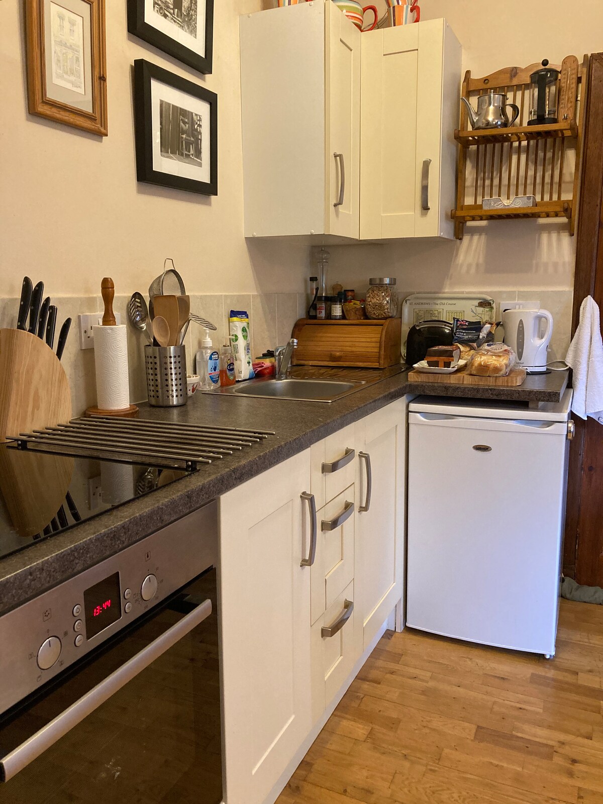 Piccolo cottage indipendente. Soggiorno con parete in pietra, cucina completamente attrezzata e portefinestre che si aprono sul giardino. Ideale per una coppia con 1 letto matrimoniale nella camera da letto con bagno. Letto a sdraio adatto a bambini o adulti di piccola taglia al costo di 20£ in più. Gli animali domestici ben educati SONO i benvenuti, ma NON devono essere lasciati soli, il giardino è chiuso ma non sicuro. Niente erbacce o sporcizia sull'erba. Colazione gratuita per la prima mattina, tè, caffè e condimenti Wifi potente RIGOROSAMENTE VIETATO FUMARE