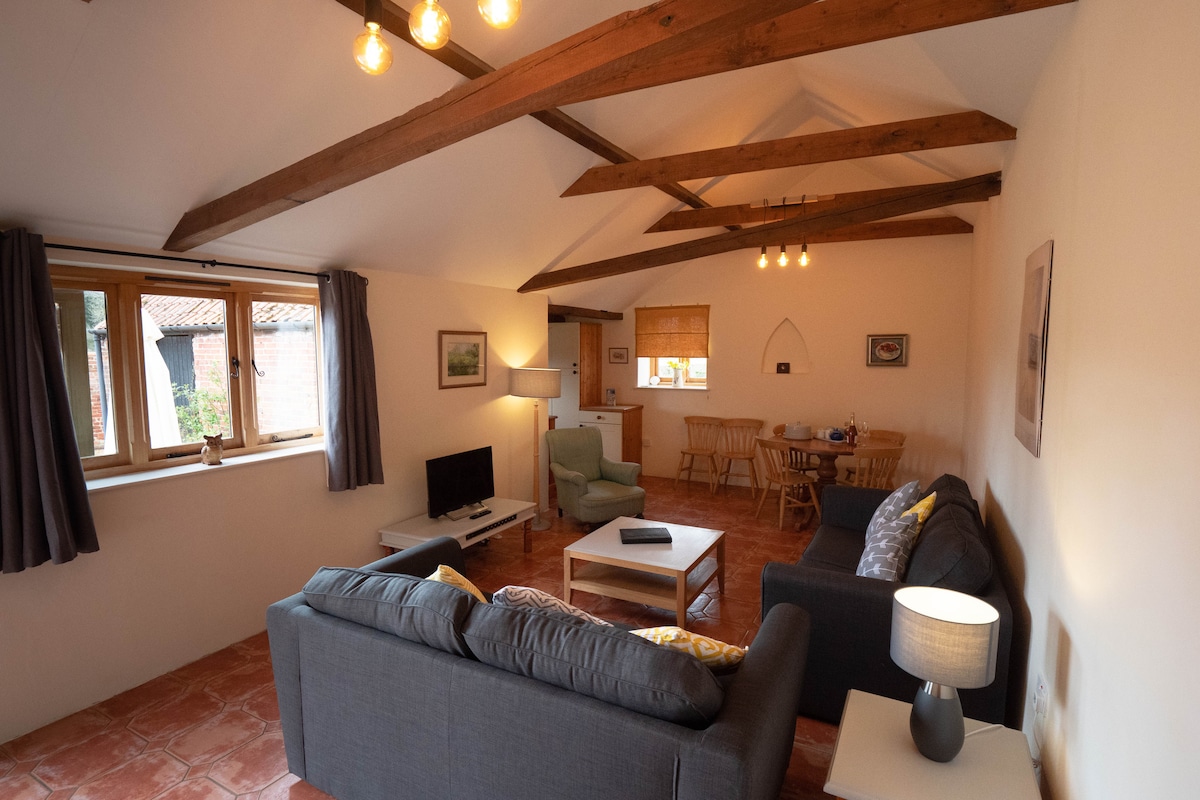 Take a break and unwind at our peaceful oasis. Primrose Farm Barn is a detached barn in our garden but also quite separate from us, and set in a very quiet location. Southwold is only a 10 minute drive or 30 minute cycle away. Lovely countryside walks and cycling routes direct from the Barn. Bike storage is available. You will need a car to get around!