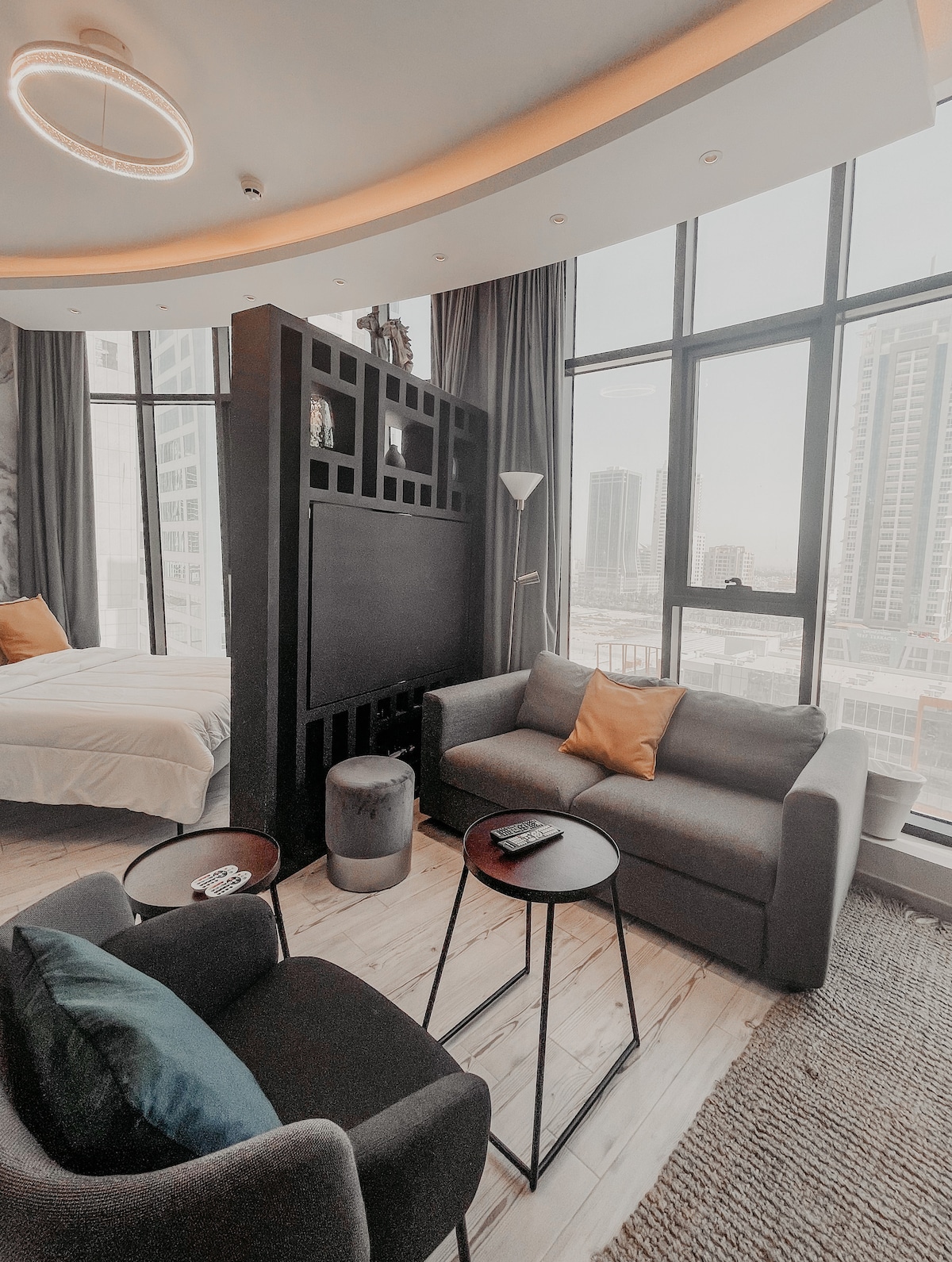 Svegliati con tramonti mozzafiato e viste panoramiche. Situato al 35° piano, questo accogliente e moderno appartamento combina calore, stile e comfort con interni dal design accattivante e tocchi curati. Situato nella città di Manama, questo spazio moderno si trova a meno di 15 minuti dalla vivace cultura della città, dai mercati, dai caffè sul lungomare, dalle attrazioni culturali, dai migliori ristoranti e dalla vivace vita notturna. L'appartamento è al di sopra del rumore della città ed è perfetto per una fuga tranquilla!