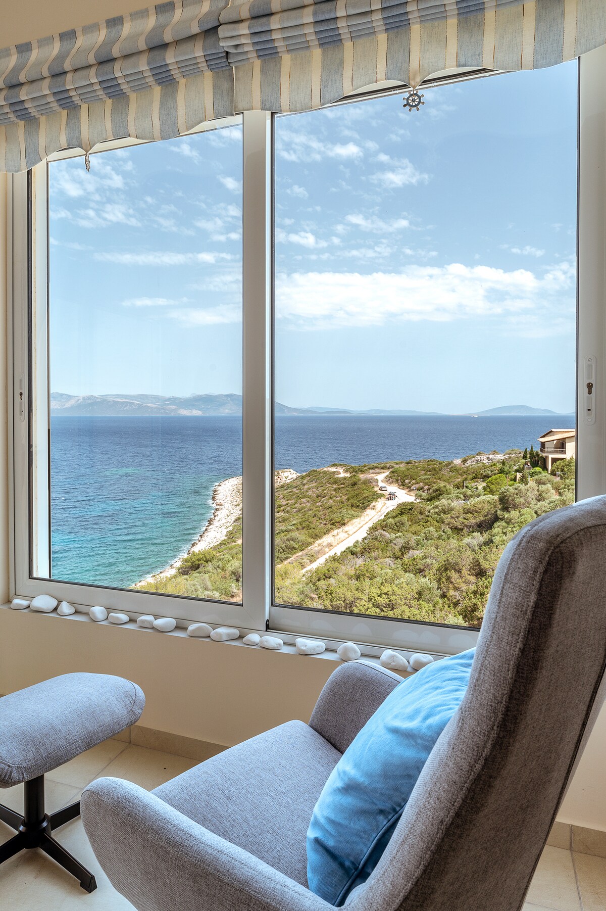 Benvenuto in una villa di lusso contemporanea unica con vista panoramica sul mare nel sud del Golfo di Evia. Atene, Chamolia Il nostro lussuoso appartamento al 1° piano offre un soggiorno e una sala da pranzo elegantemente arredati, una cucina completamente attrezzata, 2-3 camere da letto, 1-2 bagni e un ampio balcone con una vista incredibile. Gli ospiti possono trascorrere del tempo riposando nel nostro giardino colorato, godendosi la splendida vista sulla riviera di Porto Rafti dal balcone o semplicemente rilassandosi sulle sedie a sdraio vicino alla piscina all'aperto.