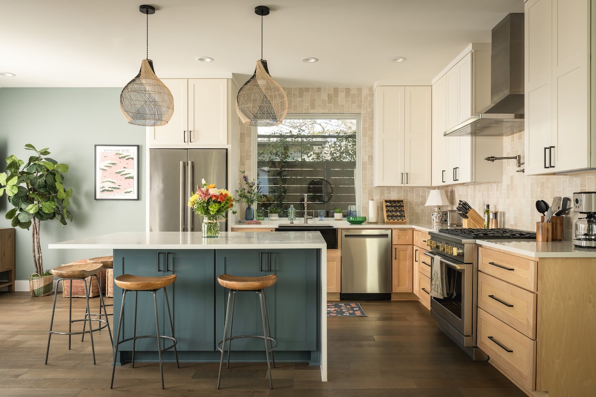 Un moderno rifugio benessere con atmosfere da spa e un design zen rilassante. Questa casa con 3 camere da letto e 2 bagni è stata progettata per lavorare da remoto, recuperare le energie e riconnettersi con gli altri. Presenta una disposizione open space, una scrivania, un giradischi e un cortile privato. Dopo una giornata all'aperto, rilassati nella sauna o mangia sotto le luci a corda. Vicino al centro, all'aeroporto e ad alcuni dei migliori ristoranti di Austin. • Sauna e vasca di immersione fredda • Attrezzatura per l'allenamento • Spazio di lavoro dedicato • Arredamento tranquillo e ispirato allo stile zen