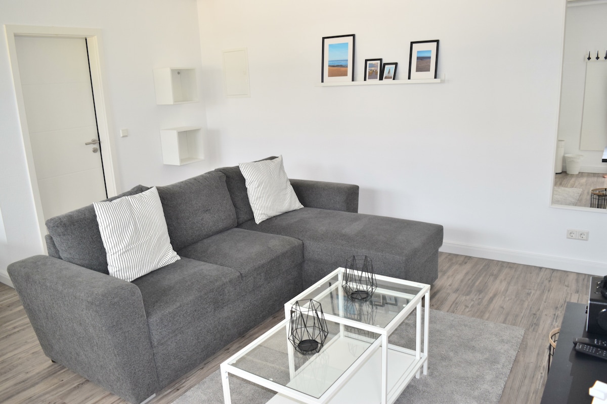 Classificazione DTV 3***. Il luminoso appartamento di 2 locali Möwennest by DeJu a Norderney è di circa 40 mq e si trova direttamente sulla spiaggia occidentale. È caratterizzato da una posizione molto centrale. La spiaggia o il centro termale con lo stabilimento balneare adiacente sono a 200 m. Adatto e prenotabile fino a 4 persone (si prega di notare le indicazioni). L'appartamento è stato completamente ristrutturato all'inizio del 2024.