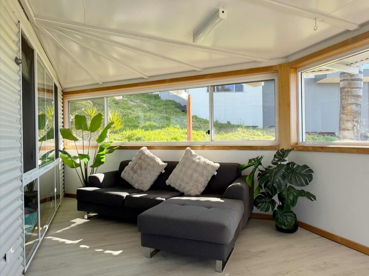 Prenditi una pausa e ricaricati nel "NUOVISSIMO" Airbnb di Merimbula. Questo grazioso chalet del 1956 è stato appena ristrutturato e dispone di un bagno privato all'aperto con vista sulla boscaglia e sull'oceano. Abbiamo camere con letto matrimoniale e letti singoli a castello, ideali per coppie o piccole famiglie. Il bush che invade il cortile è dove troverai la fauna selvatica australiana. Le spiagge incontaminate per nuotare e fare surf, i ristoranti, i caffè e i negozi si trovano a soli 5 minuti di auto. Le possibilità sono infinite.