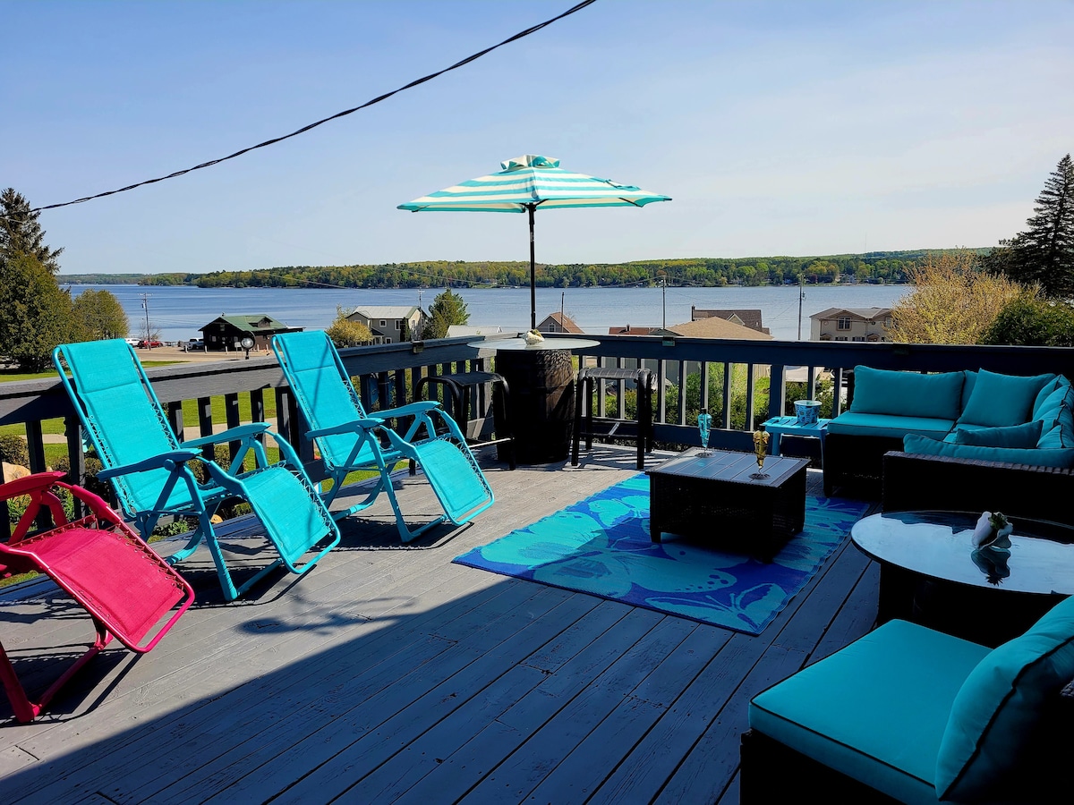pulito appartamento completamente contenuto una camera da letto con vista sul braccio sud del lago Charlevoix. appartamento completamente arredato. camera da letto ha un letto queen size. in soggiorno è un divano letto estraibile queen size. Wi-Fi forte incluso. cucina è ben attrezzata con stoviglie pentole e padelle argenteria abbastanza per cucinare un pasto completo. cucina ha un tavolo con quattro sedie. bagno non ha una vasca, ma ha una bella cabina doccia in fibra di vetro. facile passeggiata di mezzo miglio per le strade principali di East Jordan per i ristoranti.