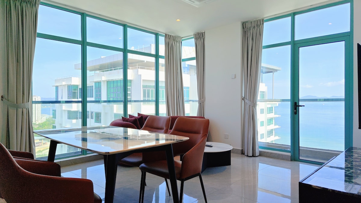 💡 Per motivi di sicurezza non viene fornito il ferro da stiro, ma su richiesta è disponibile una macchina a vapore per indumenti ✔️ Unità 15F 2BR con balcone privato 🌊 Baia di Likas, monte Kinabalu, moschea di Kota Kinabalu e Tun Mustapha 🛏️ Camera da letto principale: 2 letti queen size | Seconda camera da letto: 2 letti singoli (senza finestre) 🚿 Bagni privati e armadi a vista 🛋️ Soggiorno: divano, smart TV da 55" 🍳 Angolo cottura: piano cottura, cappa, posate, tazze 🍽️ Tavolo da pranzo per 2 persone ⚡ Wifi veloce