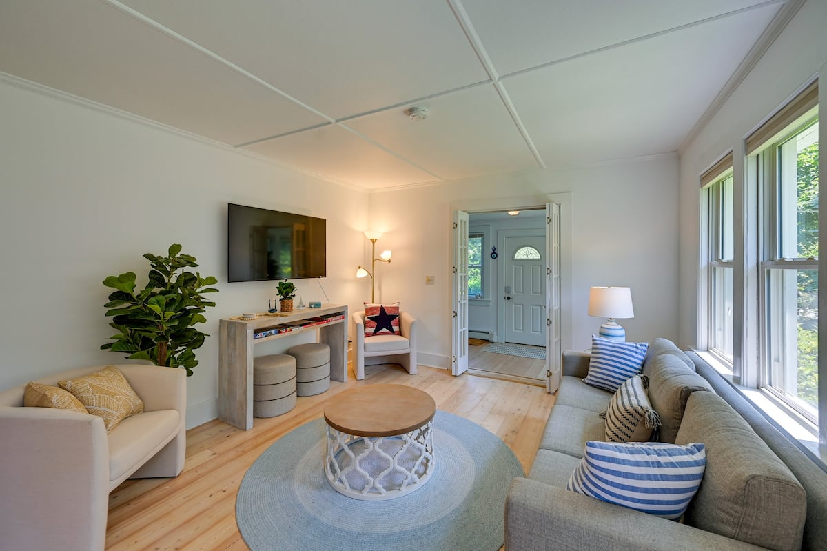 Recentemente ristrutturato e presentato come uno dei migliori alloggi Airbnb da New York Magazine, The Beach Cottage è stato progettato e decorato in uno stile moderno e organico, con una tavolozza di bianchi e neutri per creare un rifugio sereno e tranquillo. Rilassati nell'ampio soggiorno luminoso e arioso, che dispone di una parete in vetro per vivere sia all'interno che all'esterno, con ampie viste ininterrotte sull'acqua. Rimani nella proprietà per nuotare, passeggiare sulla spiaggia, goderti i tramonti e fare barbecue, oppure avventurati fuori per goderti tutto ciò che North Fork ha da offrire.