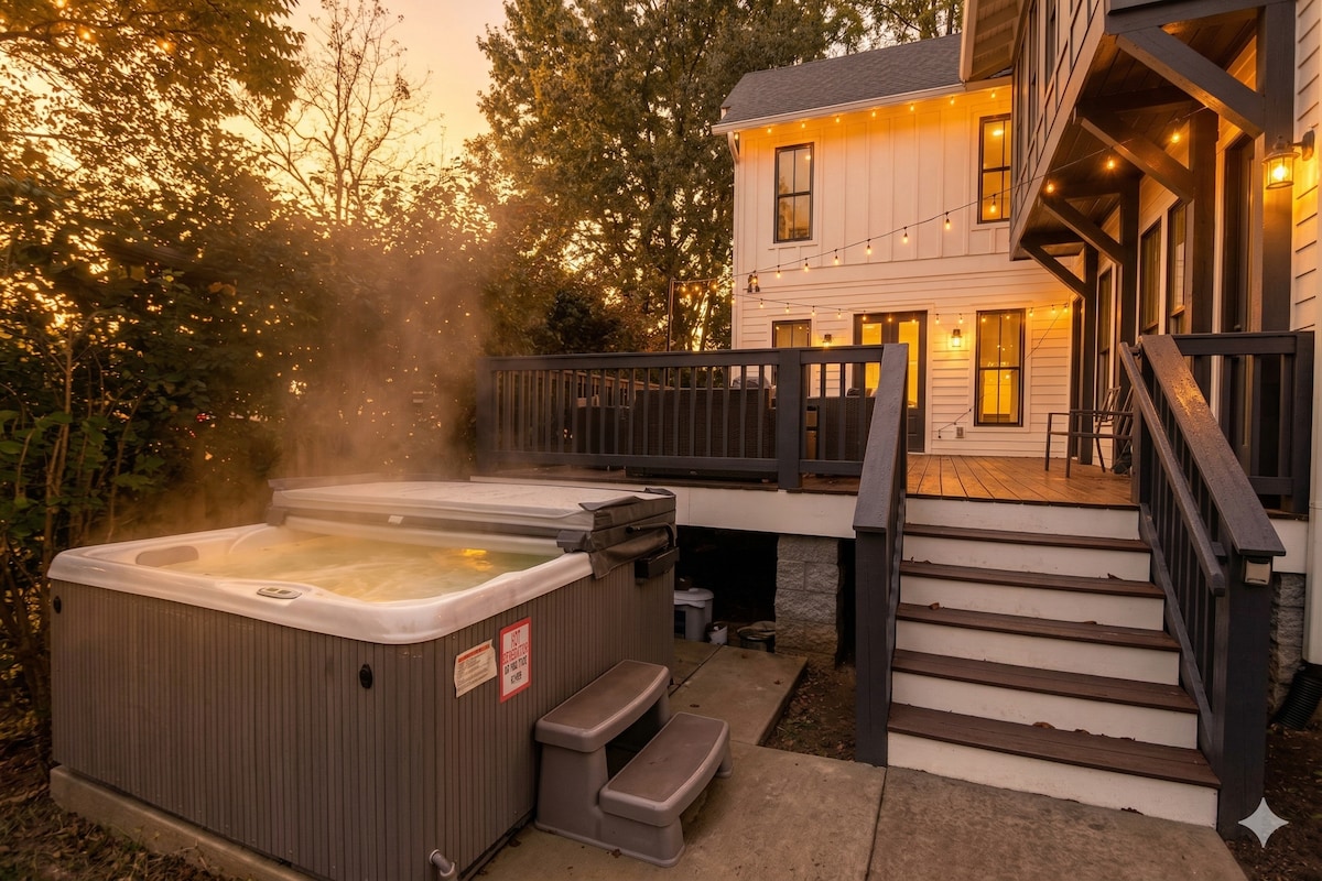 Nuovissima vasca idromassaggio aggiunta! Goditi una vacanza all'insegna dello stile in questa casa splendidamente decorata in centro. Questa casa moderna splendidamente arredata dispone di 3 camere da letto, 2 bagni e mezzo, una cucina completamente attrezzata con posti a sedere, un ampio soggiorno con posti a sedere a bizzeffe e 3 diversi spazi esterni da godersi! A meno di 3 km dalla storica Germantown e a breve distanza in Uber/Lyft (circa 10 $) dal centro, da Broadway, dalla Bridgestone Arena e dallo stadio Nissan! Prenota subito per iniziare la tua avventura!