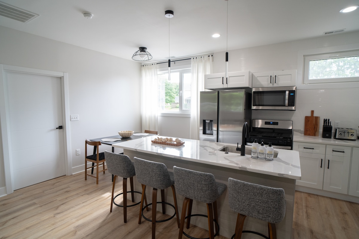 Bellissima casa d'epoca restaurata proprio nel centro di Conneaut. Negozi di alimentari, palestra, ristorante/bar, chiesa di Rock e molto altro a 0-2 isolati di distanza! 2 camere da letto con comodi letti matrimoniali, un ENORME bagno, una grande cucina e un bar nel seminterrato! A pochi minuti dalle spiagge del lago Erie, dal porto turistico e dai ristoranti. La nostra casa viene pulita e igienizzata meticolosamente tra un ospite e l'altro. Questa è una casa indipendente con ingresso privato.