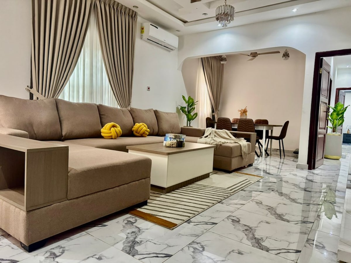 1. La sicurezza è un fattore principale nella scelta dell'alloggio? 2. Cerchi un alloggio elegante con servizi incredibili e tocchi curati? 3. Vuoi provare un'ospitalità eccezionale durante il tuo soggiorno? Allora Serene Haven è la scelta perfetta per te. Questa bellissima casa con due camere da letto è situata all'interno di Devtraco Courts '(una tenuta recintata ben pianificata e gestita) ambiente sereno presso la Community 25, Tema che ospita molti professionisti e vanta una sicurezza 24 ore su 24, 7 giorni su 7.