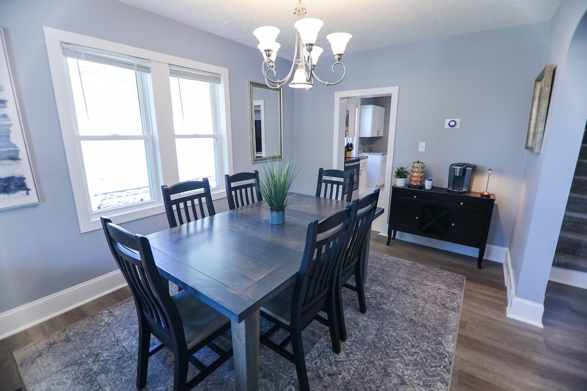 Accogliente casa con 3 camere da letto in un quartiere tranquillo a soli 4 minuti dal centro di Eau Claire e a 7 minuti da UWEC. Dispone di un ampio cortile, una stanza soleggiata per 3 stagioni, Wi-Fi veloce, Smart TV e una cucina completamente attrezzata con frigorifero e fornelli nuovi. Può ospitare fino a 6 persone, con un bonus nascosto: l'ottomana si trasforma in un letto singolo per un ospite o un bambino in più. Parcheggio privato incluso!