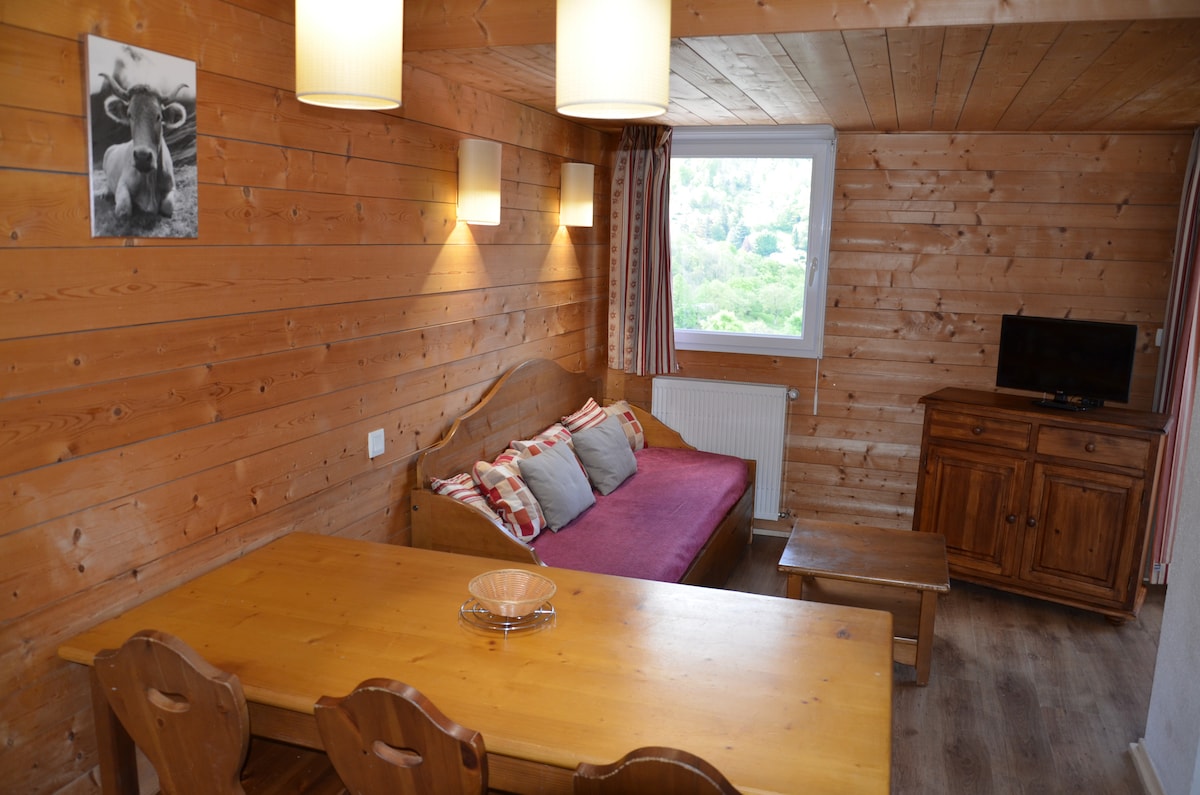 Appartement familial dans résidence Lagrange, à 10 mn du centre ville et 8 mn du télécabine du Lys (à pieds,chemin d'accès depuis la résidence) Environ 23m2, coin nuit avec deux lits superposés (rangement, TV) et d'un séjour avec canapé lit gigogne, cuisine équipée, salle de douche avec WC, terrasse couverte Au 4 ème étage de la résidence (ascenseur jusqu'au 3 ème étage), Piscine semi-couverte et chauffée (ouverte toute l'année sauf en novembre), sauna et hammam gratuits sur réservation.