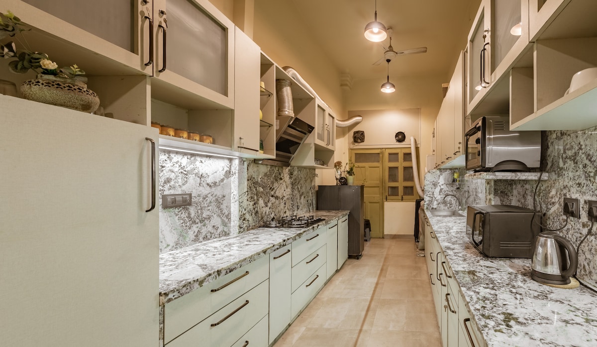 ● Government Certified 1Bhk Flat ( Legally licensed ) ●Goditi il tuo soggiorno in una dimora accogliente e raffinata. ● Vieni a scoprire la nostra zona giardino e terrazza esteticamente gradevole😀. ● Nota: 3° piano, senza ascensore (ma con scale facili e comode, promesso 😉) ●Nessun parcheggio 🤗 ● Servizi forniti: Ac Geyser Frigo Cura personale (spazzolino da denti, dentifricio, shampoo, sapone per il corpo) Ferro da stiro Cucina e utensili Zona pranzo Wifi ad alta velocità Spazio di lavoro privato Armadio Acqua