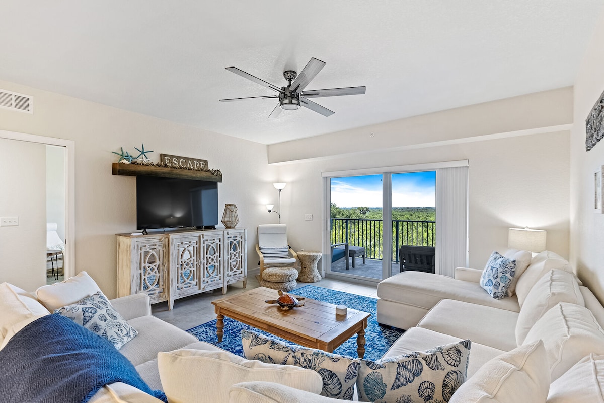 Può ospitare fino a 5 persone, molto luminosa, open space, piano terra, unità anteriore, a pochi passi dalla piscina, cucina completamente attrezzata con piatti, bicchieri, posate, pentole, padelle, nuova macchina da caffè Keurig, nuovo frullatore, tostapane, credenza nella zona pranzo, armadietti da cucina, bagni ristrutturati, asciugamani da bagno forniti, biancheria da letto per letto king size nella camera principale e 2 letti singoli nella seconda camera da letto, lavatrice/asciugatrice nell'appartamento. Cabina doccia, DIPINTA DI RECENTE, 2 rotoli di carta igienica, 1 rotolo di carta assorbente (ricorda che questo non è un hotel)