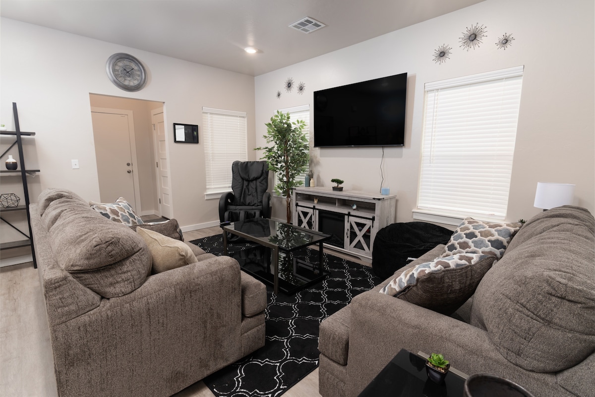 This tastefully decorated duplex is situated in the heart of Edmond, within walking distance to shopping, grocery stores and restaurants. Conveniently located to great local shopping, delicious eateries and quick interstate access to downtown OKC. Comfortably sleeps 4. With high speed wifi, smart TVs, cozy beds and a well-stocked kitchen, you’ll feel right at home! Need double the space? Book both sides of this duplex! Inquire with host if you need assistance.