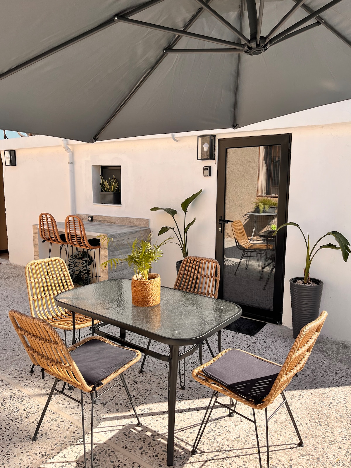 Il melograno Mikro è il perfetto connubio tra vita di città e relax. Il moderno Airbnb si trova nel cuore di Korydallos (6 minuti a piedi dalla metropolitana), vicino alla vita notturna per essere comodo, ma abbastanza lontano da offrire pace e tranquillità. Il cortile è l'oasi per eccellenza, con un bellissimo albero di melograno al centro. Che tu sia in città per un weekend o per un soggiorno prolungato, il nostro Airbnb è la scelta ideale per il comfort ad Atene.