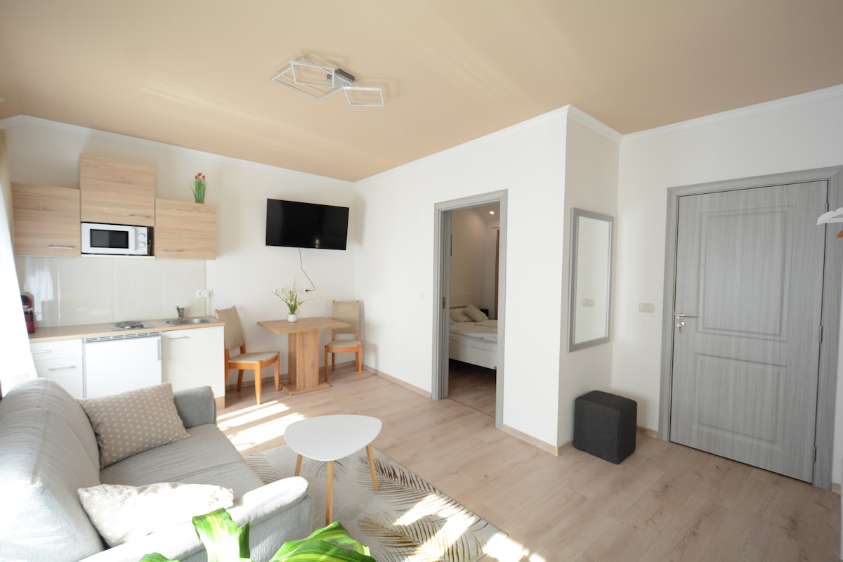New APARTMENT IN BEAUTIFUL Wienertor Center on the 1st floor close to OLD TOWN LOCATION. Everything is easy reach Supermarket right beside. Suitable for two adults or two adults and child. This nice apartment has a living space of 38 m² plus a 17 m² terrace. Fully furnished living / bedroom with high quality furniture and fully equipped kitchen, Nespresso machine, TV 55 ", high speed wifi, etc. Spacious bathroom with washing machine, shower. Free parking in building, bicycle parking under cover.