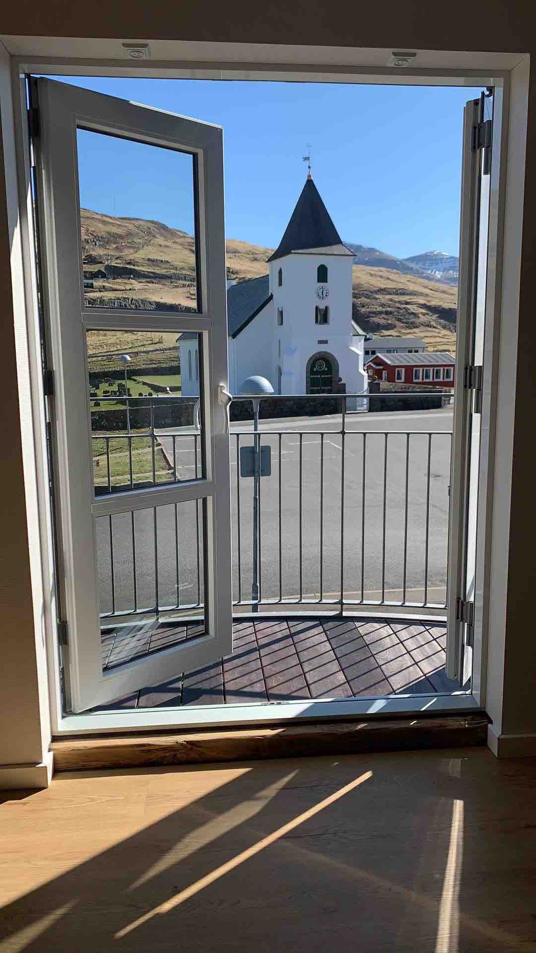 Una casa ai bordi della scogliera. Dalla zona giorno si gode di una vista diretta sulla famosa statua "The Seal Woman" e sulle montagne più ripide delle Isole Faroe. Al 1° piano ci sono cucina e soggiorno in un'unica stanza. In cucina sono presenti i normali servizi. È presente anche un bagno con doccia. Al piano superiore ci sono due camere da letto che possono ospitare 7 persone. Fuori casa c'è un piccolo balcone, dove si può godere di una vista spettacolare. Per raggiungere la casa è necessario prendere un traghetto.