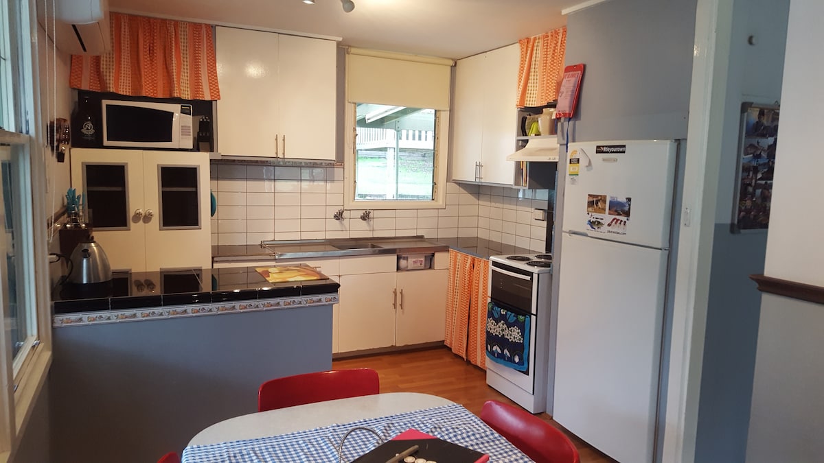 Please note bed linen and towels are not included in price! Relax on the undercover front deck overlooking parkland, or bbq in the private spacious back yard. House has a fully equipped kitchen, dining room, lounge room with wood heater, 2 queen bedrooms, 3rd bedroom has two sets of bunks. Please note bed linen and towels are not included in price.